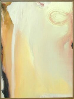 L’oeuvre, de ce jeune artiste lyonnais, révèle une qualité du regard, plus précisément un oeil, qui n’est pas un miroir stagnant – comme une eau dormante – mais un organe puissamment actif, permettant une sortie de soi en soi, capable en une intuition condensée et fulgurante de pré-esquisser la forme, plutôt l’archétype qui sera projeté sur la toile.